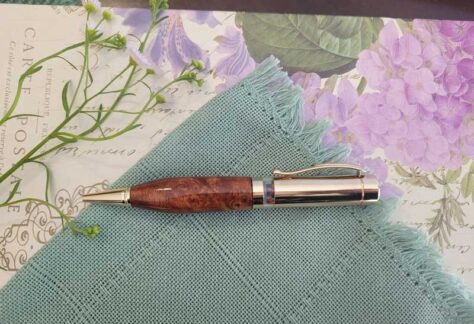 Gwen’s Pens And Crafts is a small, local business run by a teenaged woodturner in the Raleigh area. Each item for sale is unique, and handmade from an assortment of either exotic or local materials.